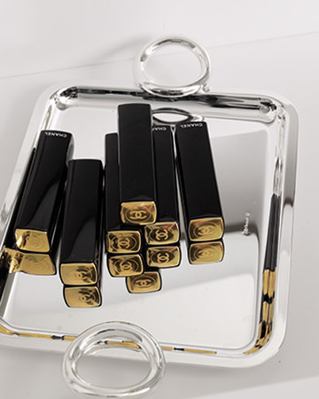 bunun için gümüş tepsilerde chanel rujlar hazırlanmış.